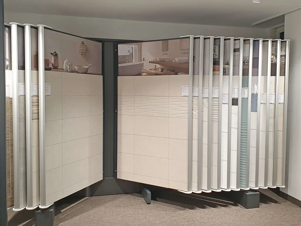 In unserer modernen Fliesenausstellung in Gütersloh präsentieren wir Ihnen mehr als 1.000 Fliesenvarianten – direkt als Originalmuster. So können Sie sich von Farben, Oberflächen und Formaten realistisch überzeugen und vergleichen.